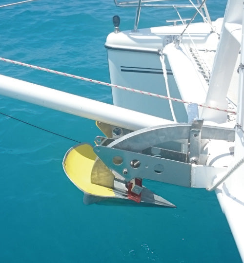 The SPADE anchor is manufactured in three materials (Galvanized Steel, Aluminum, and Stainless Steel), and comes in a size for most boat up to mid-sized yachts. Hi-tensile steel versions are hot-dip galvanized. All SPADE anchors of the same size, regard less of the material they are made of, will work with the same efficiency.