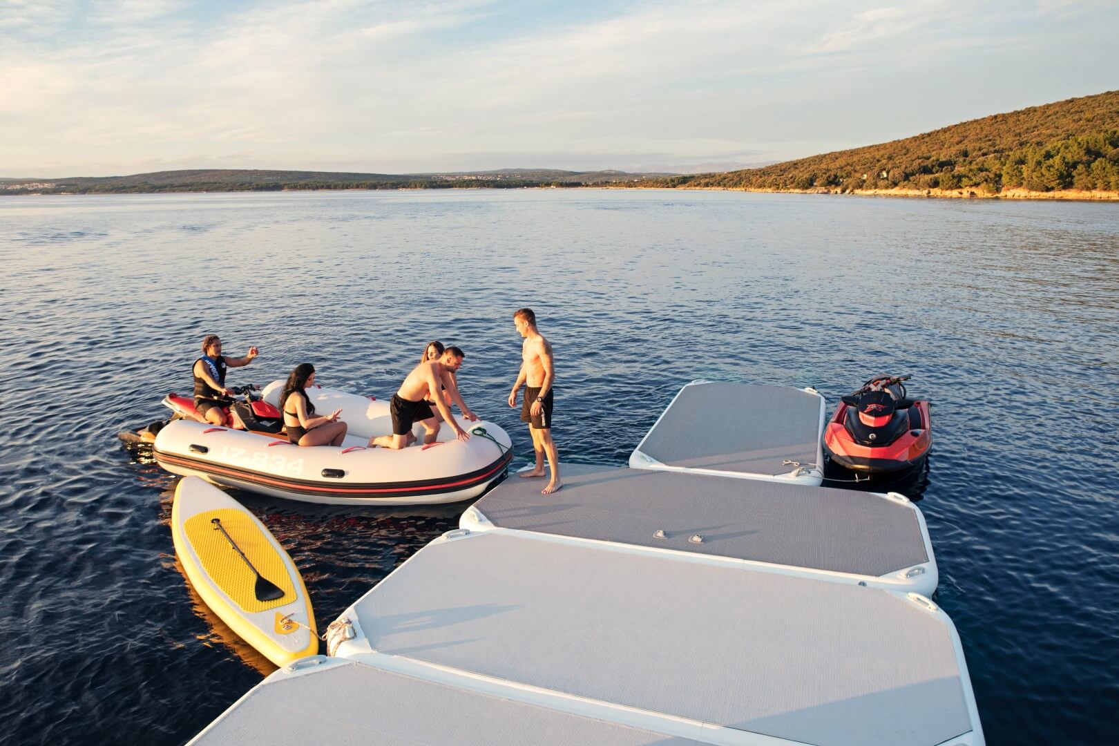 Jet ski owners like speed and manoeuvrability, but lack carrying capacity to take onboard passengers, the Jet boat offers the best of both worlds. We tested it using a BRP Spark Trixx 90hp reaching 30 knots with 1+4 people and also tested it with 2+8 people at 15 knots. But you can use it with any other jet ski. Jet boat offers extra buoyancy, stability, safety, space and visibility. It is a gadget you will miss from now on!