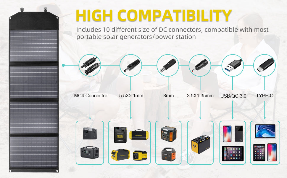 - More compatible than ever! 10 different DC connectors for charging various portable power stations and electronics