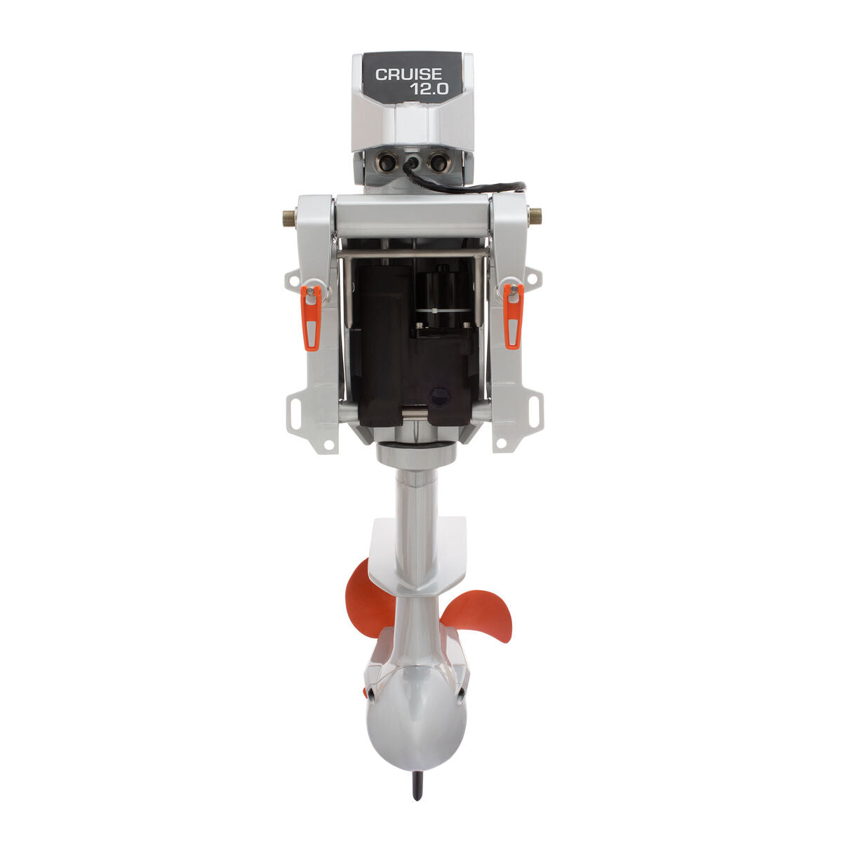 Cruise motors are the electric outboard motor of choice for motorboats, dinghies and commercial users. All Cruise systems have a built-in GPS with onboard computer and display with speed and input power, state of charge and remaining range, with a compact, low-drag, and lightweight pylon due to advanced helical gear design. Cruise 12.0 is a 48-Volt, 25 horsepower-equivalent outboard perfect for boats up to 10 tons. The Cruise 12.0 R ships with Torqeedo’s advanced communication system, TorqLink (see below for further information), which allows faster and more accurate data sharing between system components.