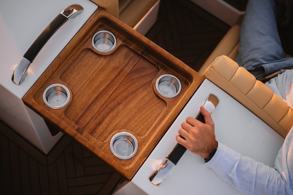 This upholstery comes in three distinct textures, allowing for a personalised touch that adds depth and character to the boat's interior.