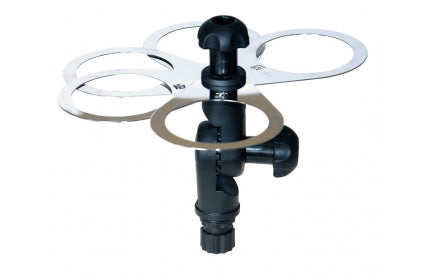 This is fitted in a mount and can hold six cups. It is made of food-grade stainless steel and has a shiny polished surface. Easy to store and opens like a fan.