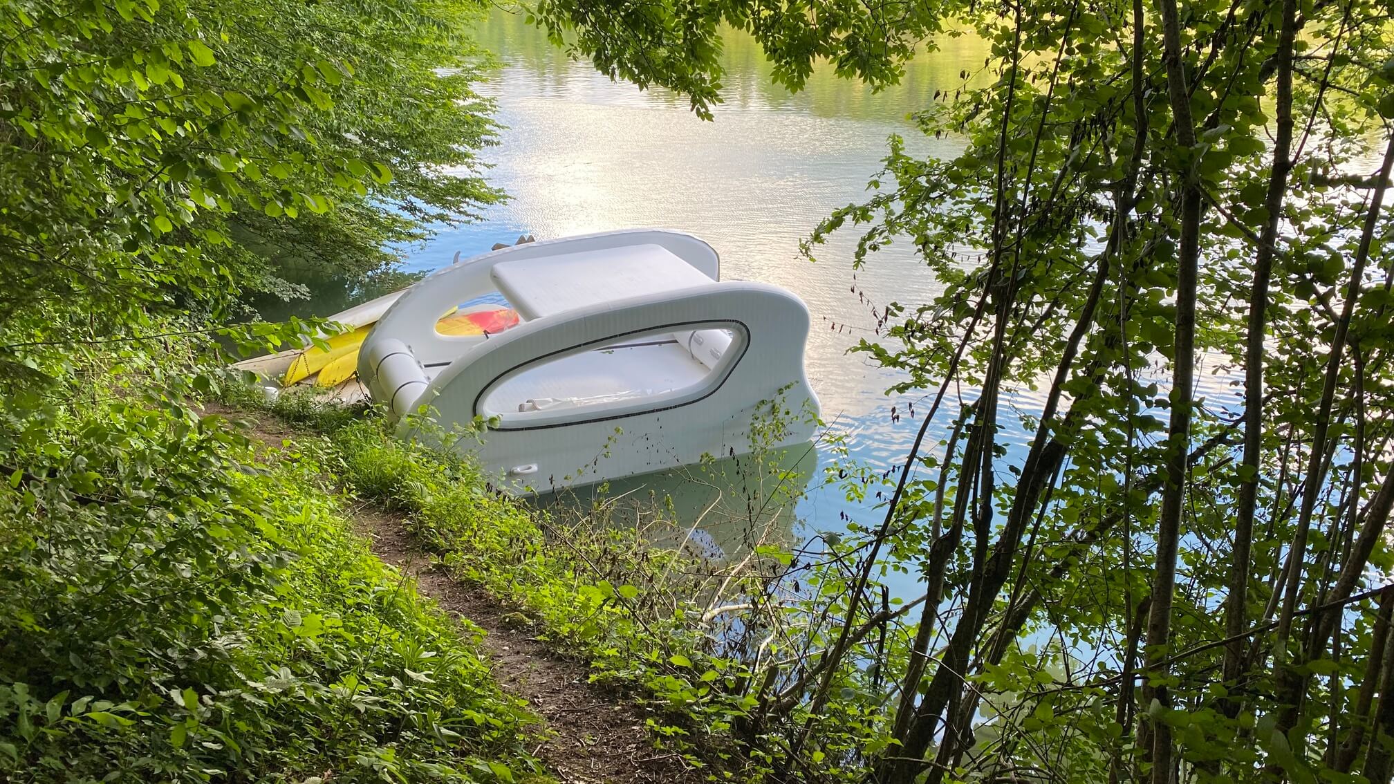 The ELECTRICAT 450 is a catamaran-style inflatable boat. Perfect for family and friends - portable enough to fit in your car trunk, comfortable and spacious when set on the water. The roof is intended for solar panels and either sunbathing or having shade inside, with 8m2 of space suitable for six people who want to enjoy sunny days.