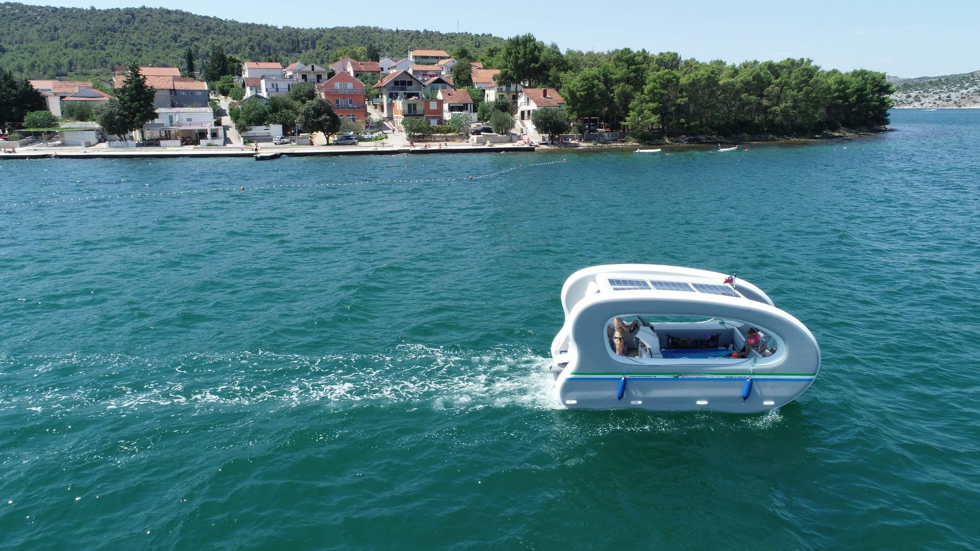 Standing height inside is more than 2m; the boat has 12m2 of space on the base floor and a 6m2 roof. It is the right choice for weekends spent on the water, sleeping area for six people will comfort you also during the day, when you need a lot of space and shade! All sides have transparent windows against bad weather and curtains against the sun.