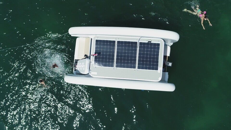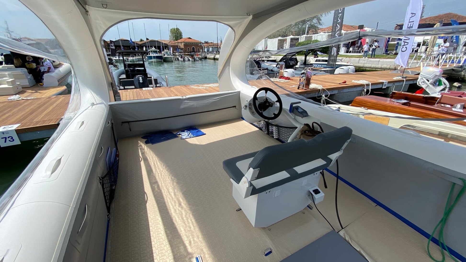 As an option, you can order a hard-box floor 200x100x40cm, perfect for electronic, battery and it is a huge trunk of 800L of extra space. If you like to "drive by wire" we offer a console for outboard motor control. With a 1kW outboard motor, you will reach up to 4 knots, 7 km/h and with 3 kW you can resist stronger wind and waves and achieve 7 knots, 12 km/h.