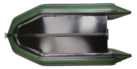This boat goes with the inflatable keel and with the rigid prefabricated planking. Rigged with the 10 hp motor this boat demonstrates perfect steerability and higher speed compared to the boats of the same dimensions. You can get it into a planning mode, if necessary. The roller back seat is a safeguard of the optimal distribution of weight and of the handy motor control. This model has a rubbing band with a splash shelf which protect its sides from bumping and friction against a moorage or reed and keep а cockpit and passengers away from excessive sprinkling. Protective molding at the underside reduces friction when a boat is dragged ashore or is transported in a trailer. You can set up a tent or a canvass in it. This boat is good for all styles of 2-man fishing (it is suitable for 3-man fishing too) and for long-distance water tours. This is the right choice for aggressive drivers too.