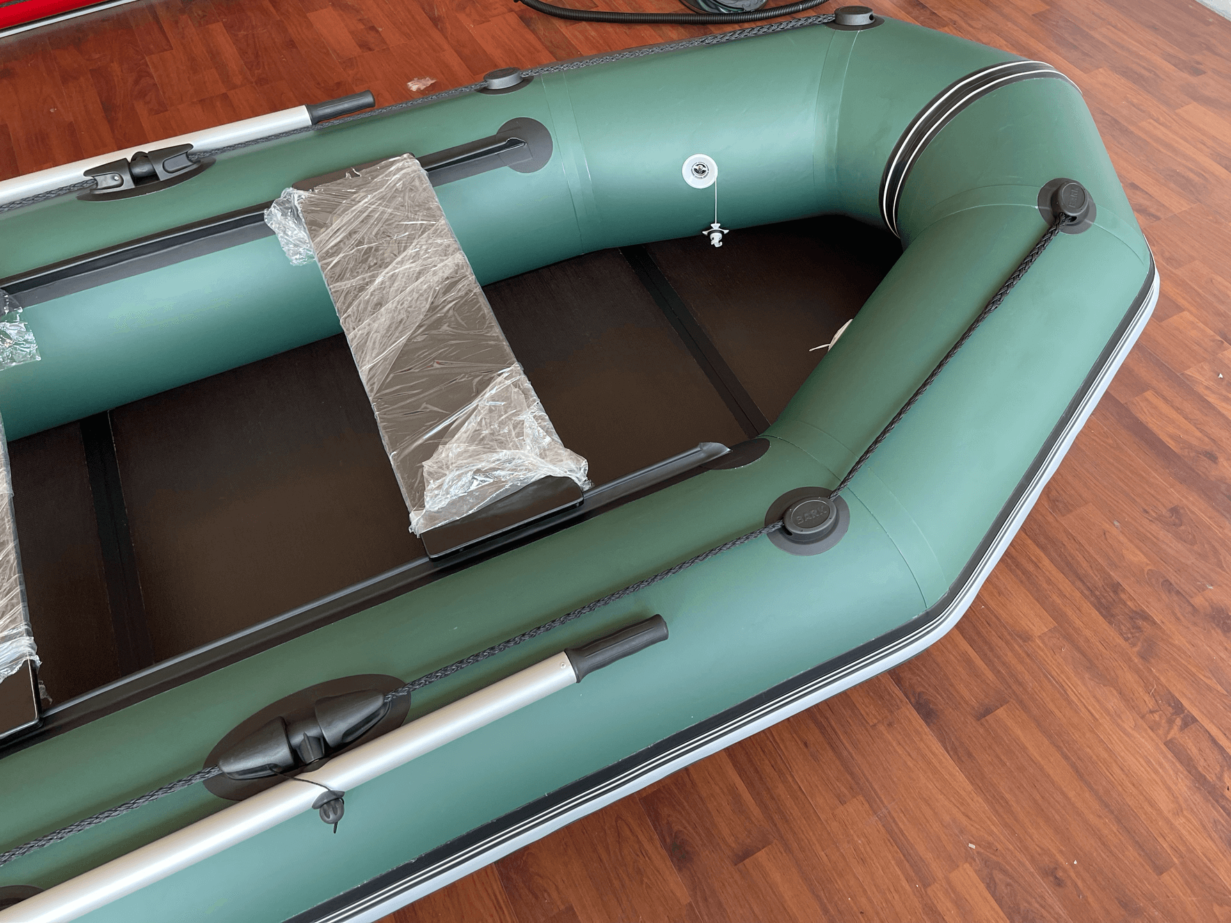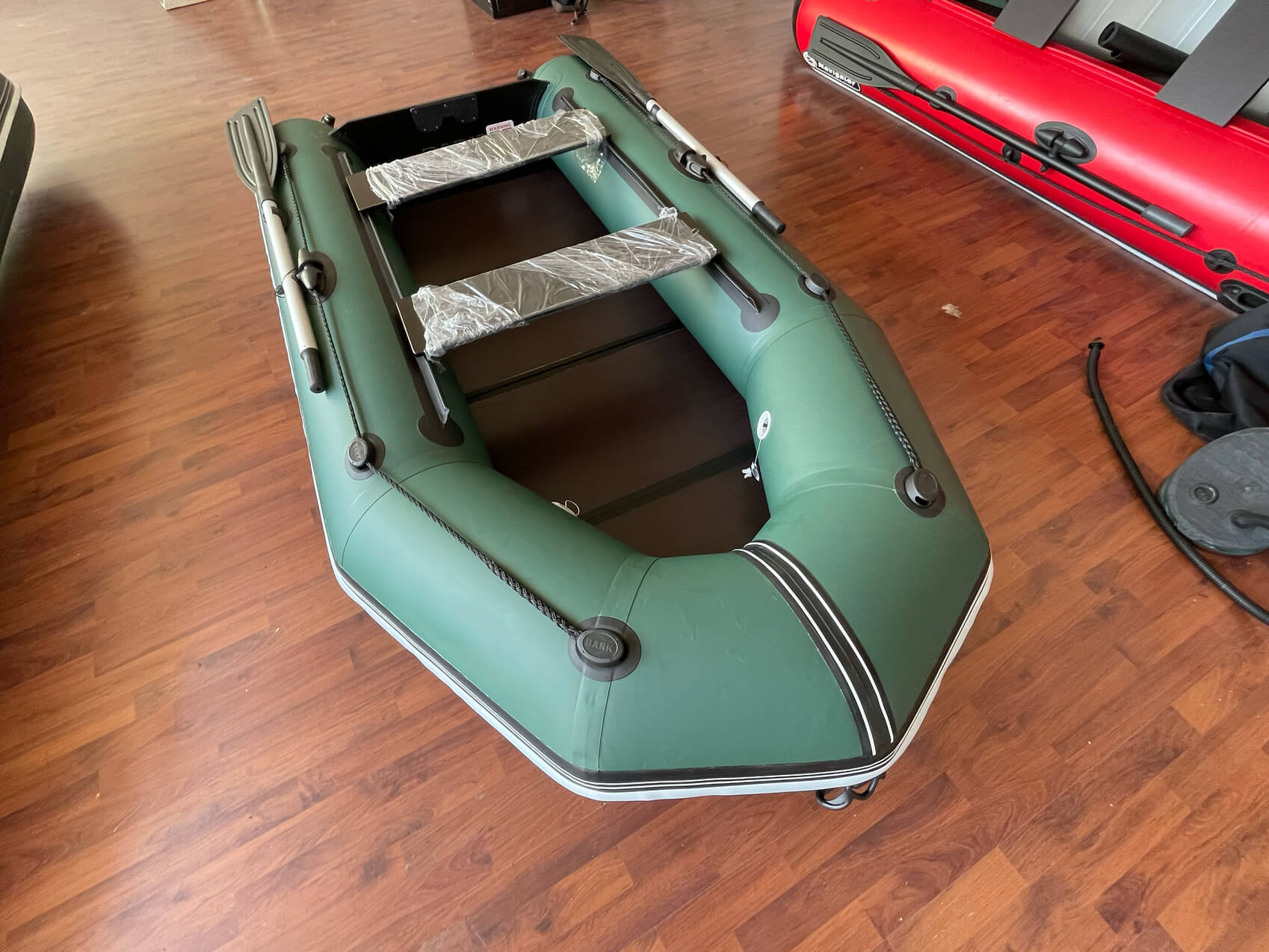When rigged with the 3.5 horse power gas motor, this boat demonstrates perfect steerability and higher speed compared to the boats of the same dimensions. Four-piece flooring makes the bottom rigid and comfortable. You can stand while fishing in it. Like all the Bark motor boats, this model has a rubber rail guard with a splash prevention design and keeps its sides protected from bumping and friction against a dock or another vessel.