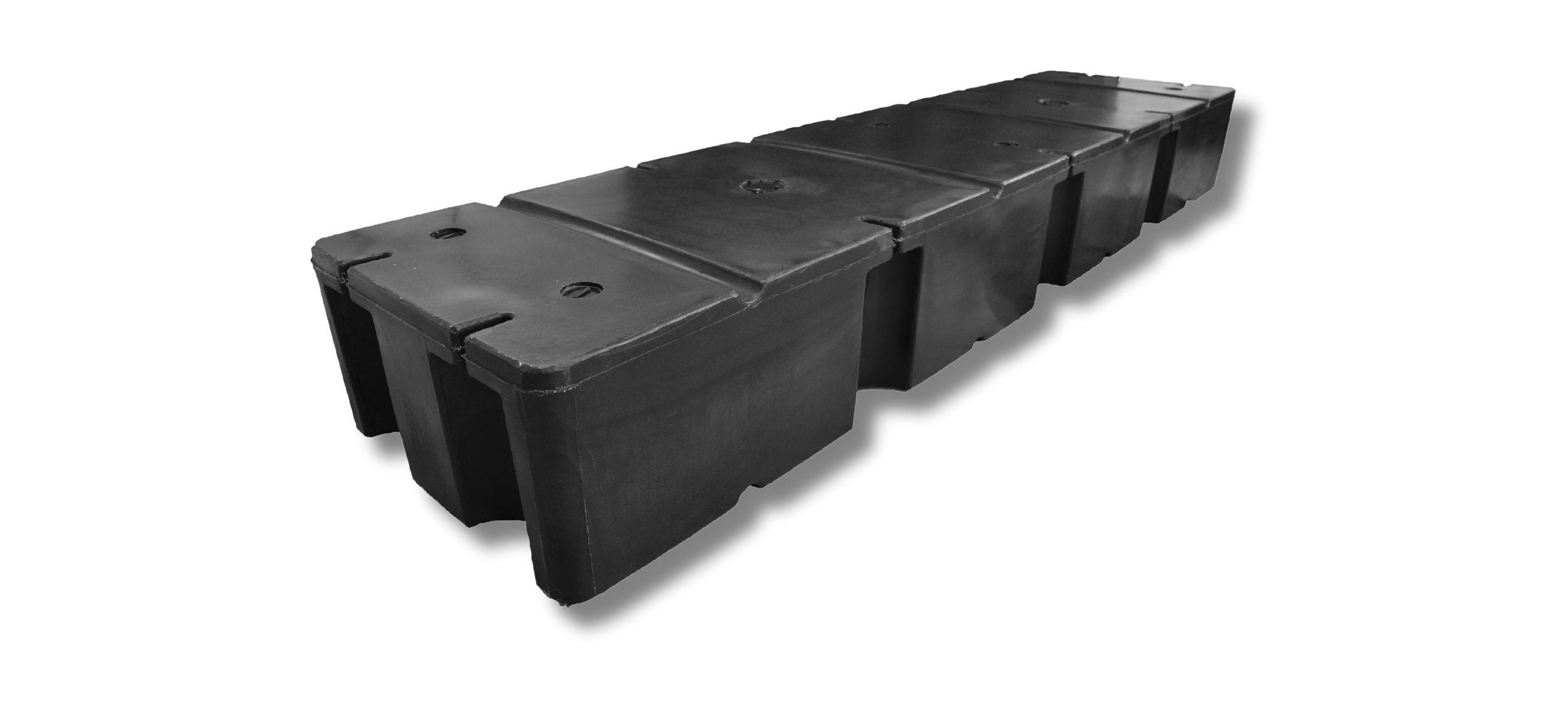 Floating HDPE boxes filled with expanded polystyrene, guaranteed for 15 years.