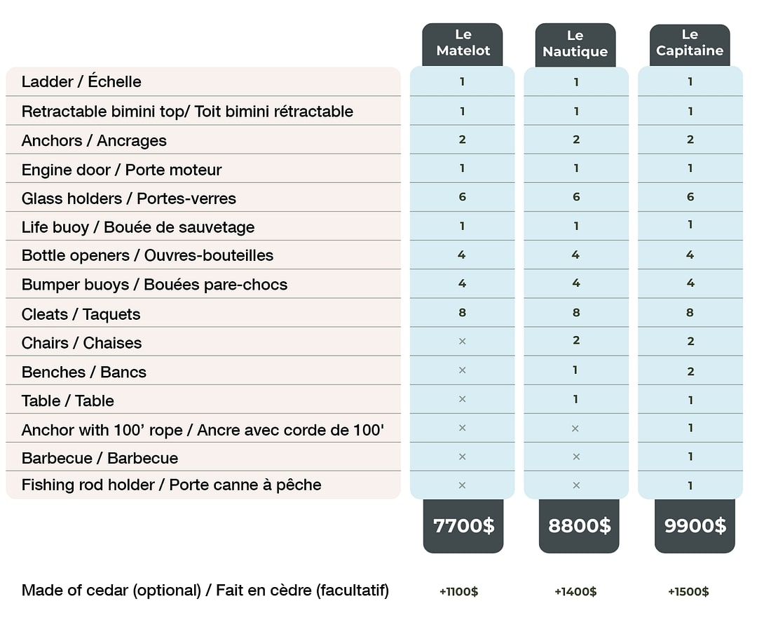 The Terraflo can comfortably accommodate up to 8 people, or a maximum load of 3500 lbs, in accordance with Transport Canada standards.