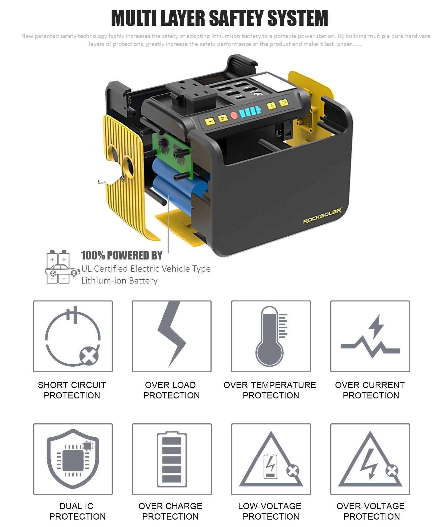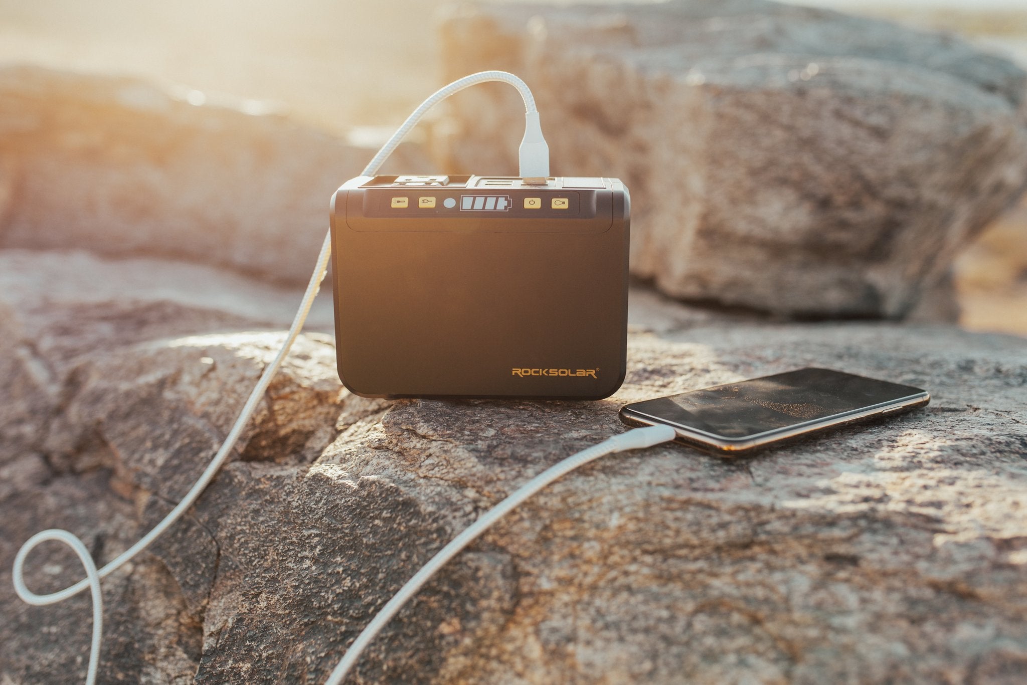 - PORTABLE POWER STATION: The ROCKSOLAR Weekender is a small, yet powerful 80W portable power station. The Weekender has a built-in advanced battery management system, that protects you and the devices you use with it from overcurrent.