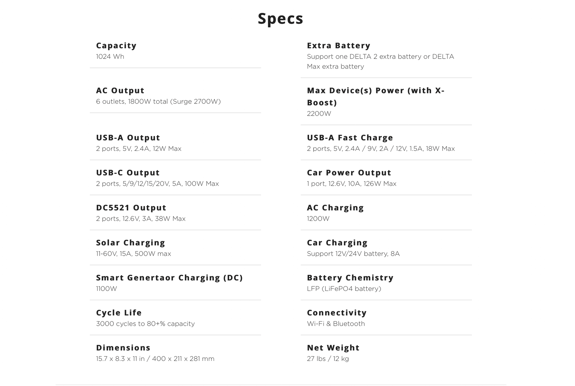 - Expandable capacity - 1-3kWh expandable capacity to grow your storage to your needs. Add on the DELTA 2 extra battery to reach 2048Wh, or add on the DELTA Max Extra Battery to hit 3040Wh. Great for home backup or everyday appliances.