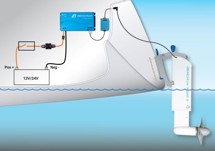 and a fixed 50 cm long (AC) cable for connecting to the charger.