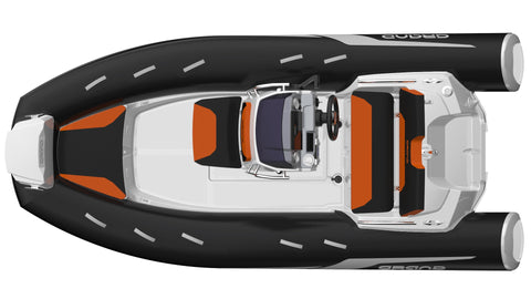 We are delighted to introduce the new G420, the latest in the Golden Line Series. The design follows the well-established Grand contemporary philosophy with a bright, dynamic appearance and aerodynamic lines.Whilst filling an important niche in the mid-size luxury tender market this model, with it’s classic layout, performs equally well as a high specification family runabout.As with the other established models in the Golden Line series, the gel, tubes and upholstery can be selected from a wide range of colors. It is also possible to order upholstery in different color combinations, including two-color in a similar way to other Golden Line models. Contrasting raised stitching at the edges of the seat covers adds a degree of elegance to the overall style.